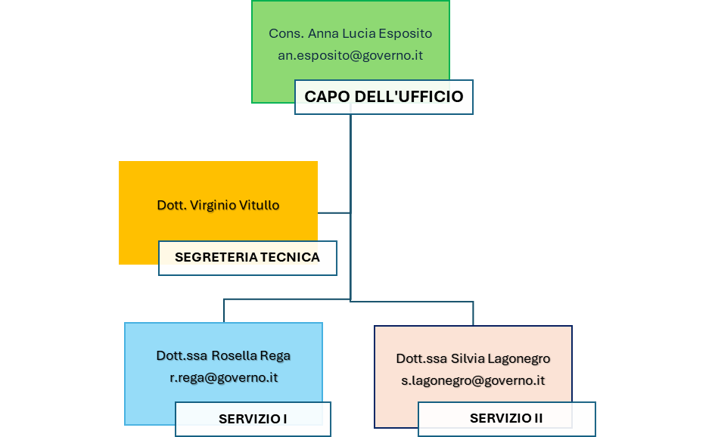 L' Ufficio si articola in due servizi di livello dirigenziale non generale e una Segreteria tecnica di livello non dirigenziale, posta alle dirette dipendenze del Capo dell'Ufficio